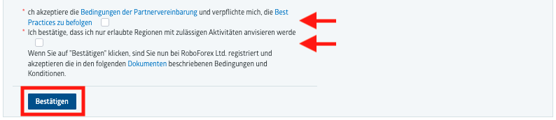 - Markieren Sie die Kästchen, um die Bedingungen zu akzeptieren.