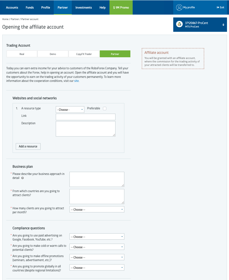 RoboForex: Partner Account Opening