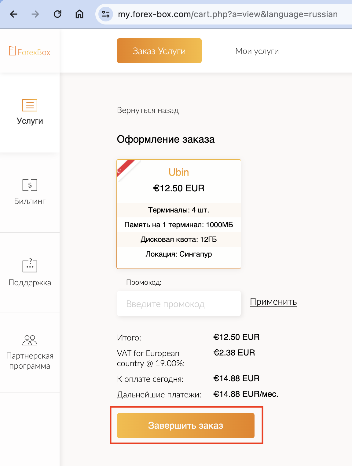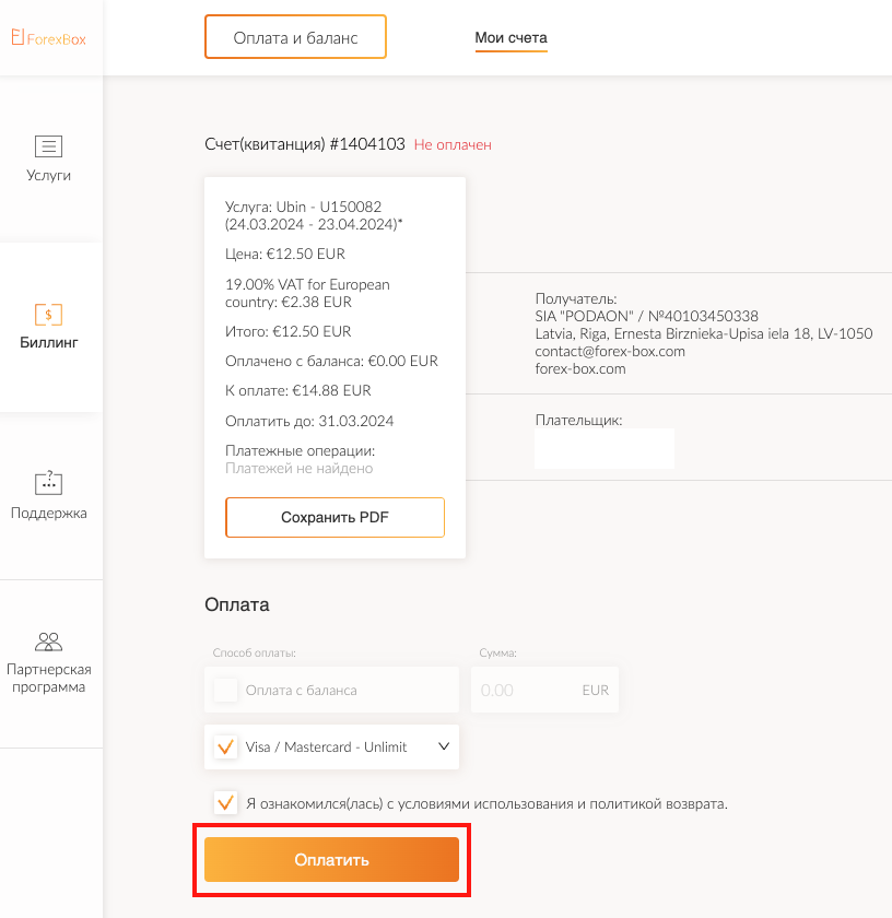 - Поставьте галочку, чтобы принять условия использования и политику возврата средств.